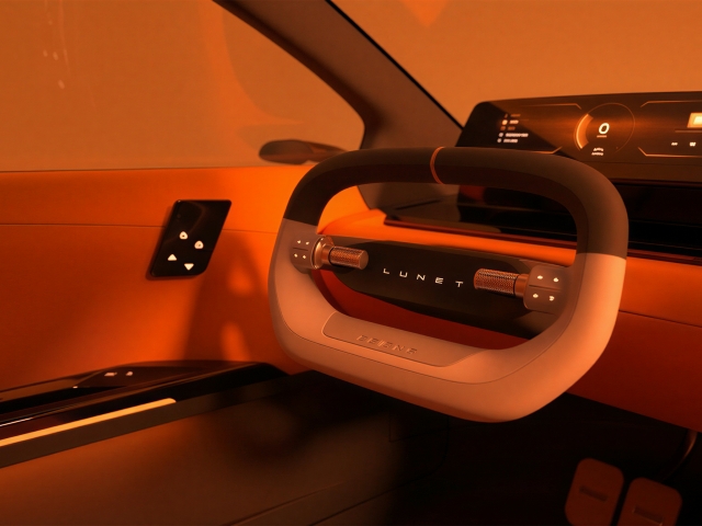 The interior reflects a clear, driver-focused sports spirit with a minimal, precise design approach. The 4+1 seating layout—two front, two rear—is specially designed for the European market, combining comfort and functionality. A flowing, orange C&T element frames the driver area, highlighting the cockpit as the pulsating center of the vehicle.