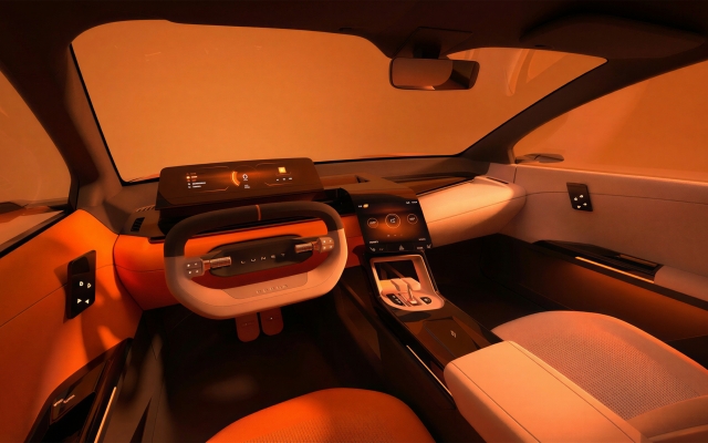Displays form a visual bridge from the steering wheel across the dashboard to the center console, creating an elegant, continuous line. Essential functions remain directly accessible via physical buttons, giving the driver uncompromised control. With a focus on clarity, precision, and intuitive usability, the interior harmoniously merges with the exterior into a thoughtfully integrated, holistic automotive experience.