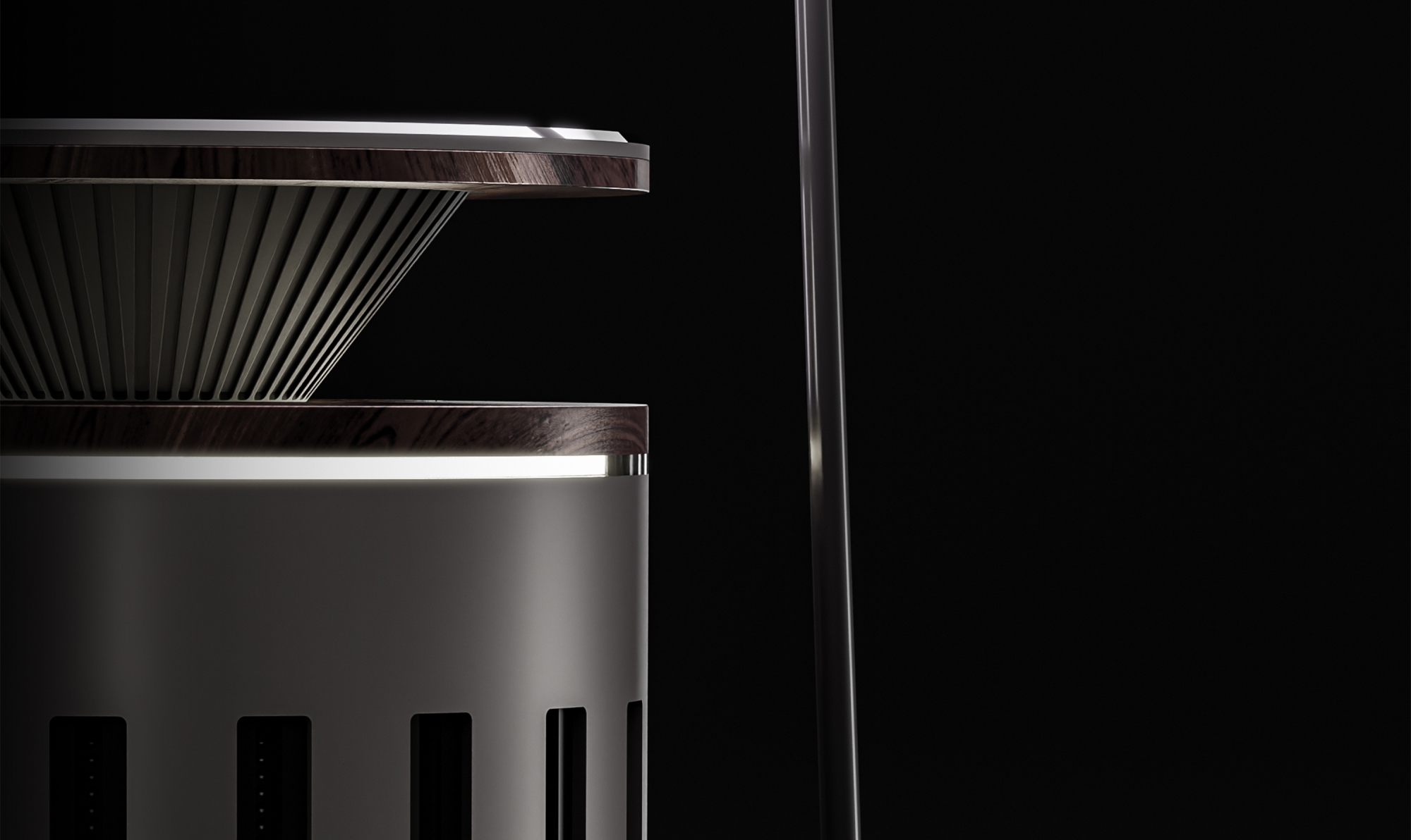 Four-stage touch lighting at the top for atmospheric lighting; mechanical sound feedback in the base for tangible interaction; modular interior design for maximum adaptability; locking height adjustment for perfect spacing without collision. The result is a holistic experience – functional, sensual, efficient.